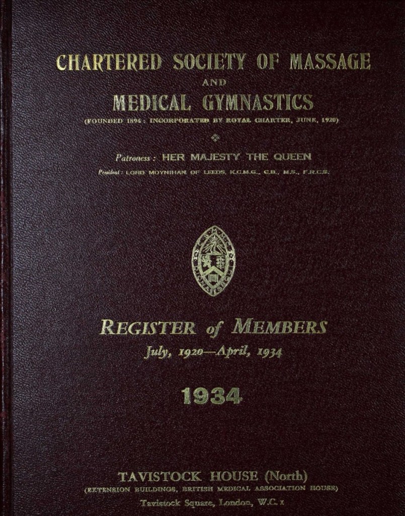 At the end of 1924 Mary Ellen leaves nursing to enter a course of massage training. This indicates her move to the Chartered Society of Massage and Medical Gymnastics, the organisation that twenty years later will become the Chartered Society of Physiotherapy.